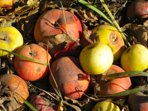 | WINDFALL APPLES Ellin Anderson Summer makes apples, then the tree lets fall That crawling wasps find empires on the ground I race by, glancing at my calendar, Oh, windfall apples that night’s lips will touch, |